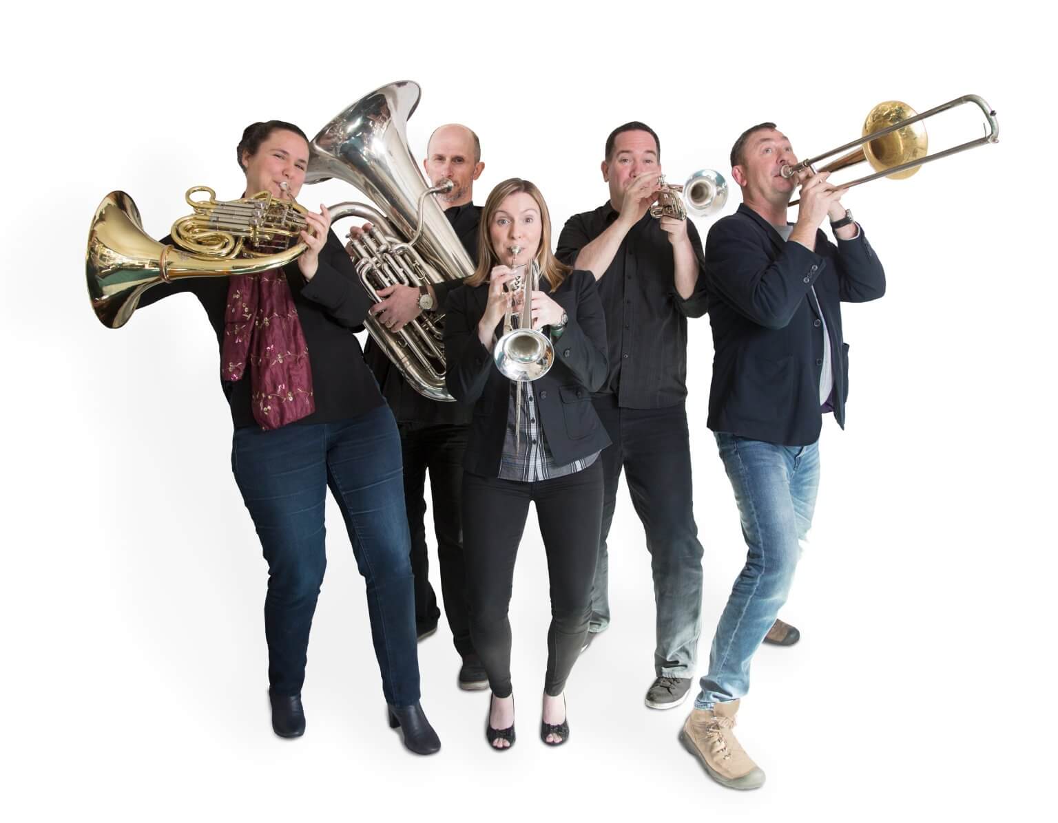 Formed in 1988 at the Victorian College of the Arts, Shrewd Brass combines superb music with rollicking laughs. A brass quintet comprising of professional musicians and music educators from jazz, musical theatre and classical music, Shrewd Brass has been touring for 20 years, and has developed a distinct, playful style of presentation. From dueling trumpet players to an out-of-control trombonist and a tuba player who needs assistance to stay in time, Shrewd Brass will bring a smile to all., With repertoire from Susato and Rossini to Gershwin and Mendez, Shrewd Brass explores the extremes of music in a light-hearted way that will keep audience delighted from beginning to end. From classical to contemporary music, jazz to fanfares and even opera, Shrewd Brass demonstrates the incredible versatility of these larger-than-life instruments through a fun and interactive performance.